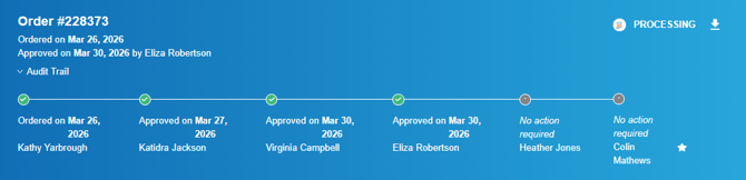 - Super-approvers are indicated with a yellow star and have access to give full and final approval to any order at any time