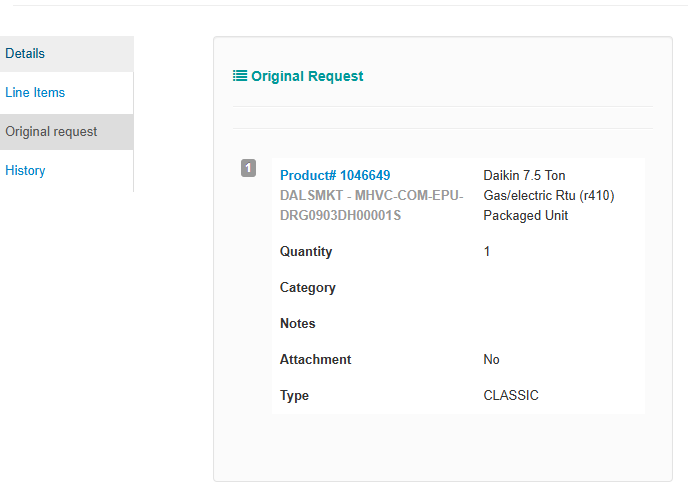 - Access the "Original Request" tab on the BDR to confirm the product information