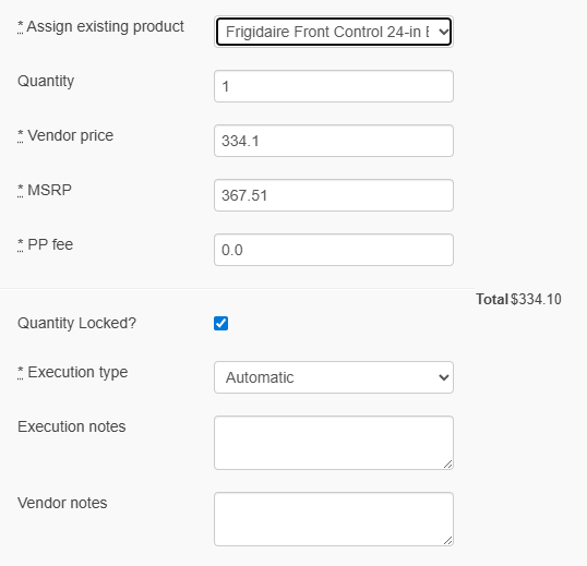 - Ex. Vendor price is $100 PP fee is 15%, enter a value higher than $115