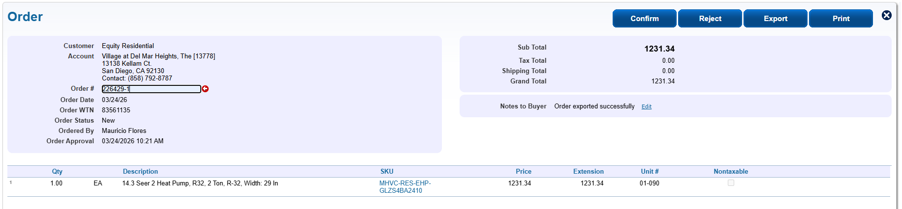 - Click "Confirm" to process the order