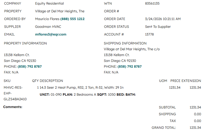 - You should receive a single result under the the vendor "Goodman - Equity Residential"