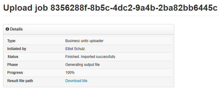 - If the status shows "Not Imported due to errors" click "Download me" by "Result file path"